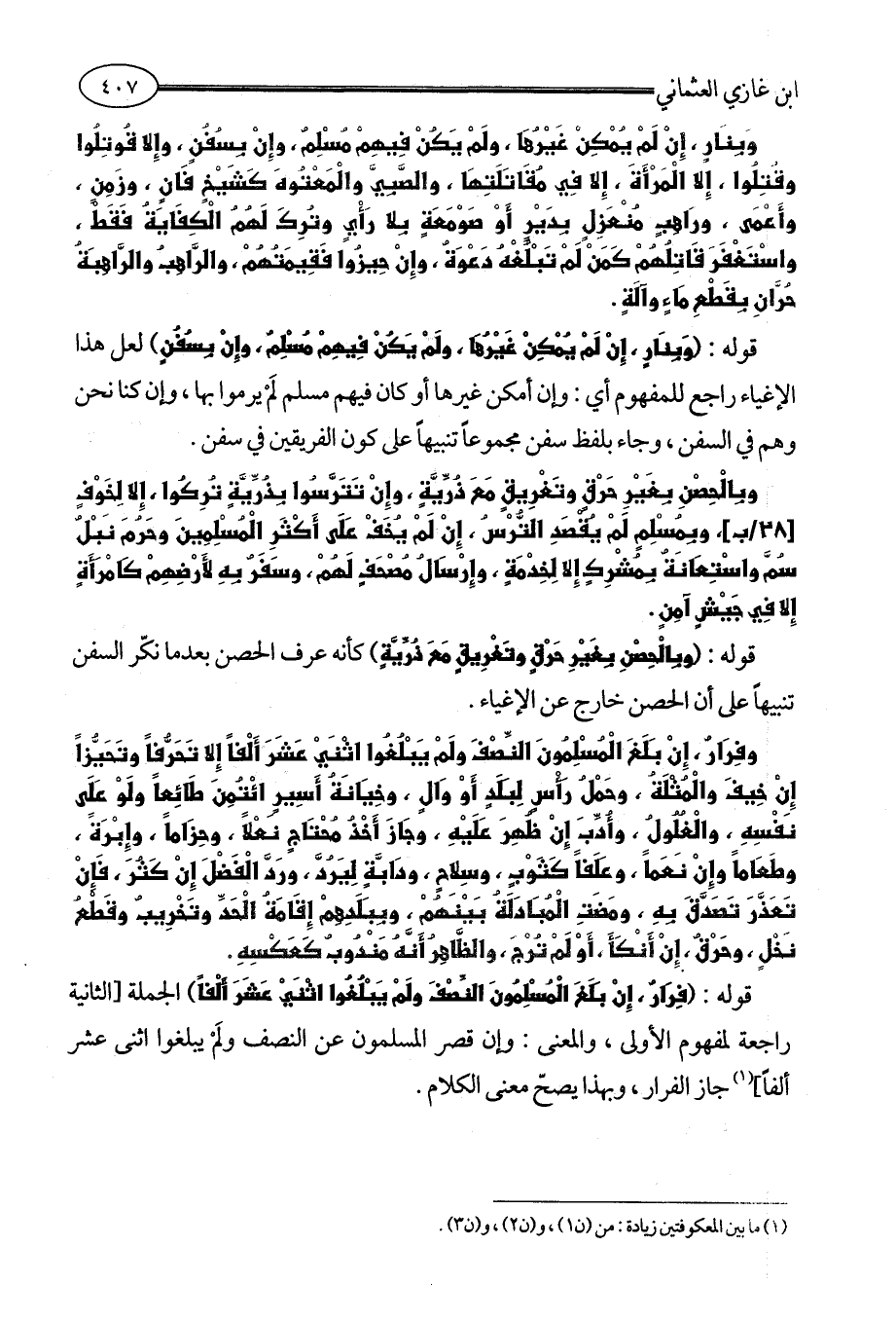قوله: (فِرَارٌ، إِنْ بَلَغَ الْمُسْلِمُونَ النِّصْفَ ولَمْ يَبْلُغُوا اثْنَيْ عَشَرَ أَلْفاً) الجملة [الثانية راجعة لمفهوم الأولى، والمعنى: وإن قصر المسلمون عن النصف ولَمْ يبلغوا اثنى عشر ألفاً] (¬1) جاز الفرار، وبهذا يصحّ معنى الكلام.