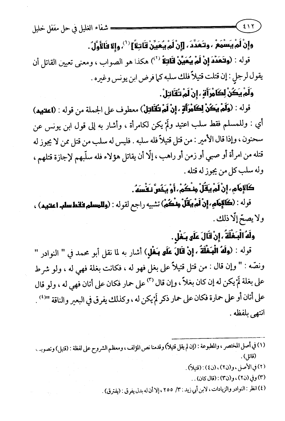 (¬1) في أصل المختصر، والمطبوعة: (إن لم يقل قتيلاً) وقدمنا نص المؤلف، ومعظم الشروح على لفظة: (قتيل) وتصويب (قاتل).