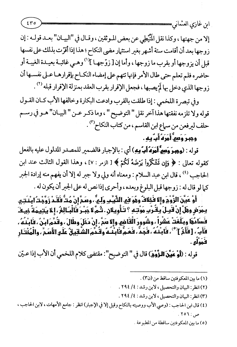 (¬3) انظر: البيان والتحصيل، لابن رشد: 4/ 294.