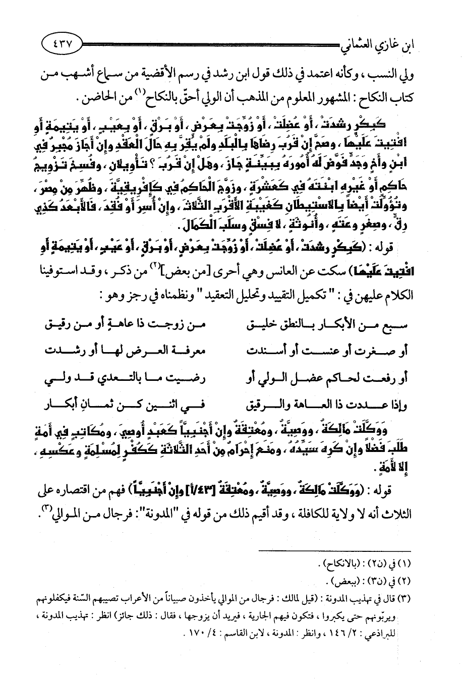 (¬3) قال في تهذيب المدونة: (قيل لمالك: فرجال من الموالي يأخذون صبياناً من الأعراب تصيبهم السّنة فيكفلونهم ويربّونهم حتى يكبروا، فتكون فيهم الجارية، فيريد أن يزوجها، فقال: ذلك جائز) انظر: تهذيب المدونة، للبراذعي: 2/ 146، وانظر: المدونة، لابن القاسم: 4/ 170.
