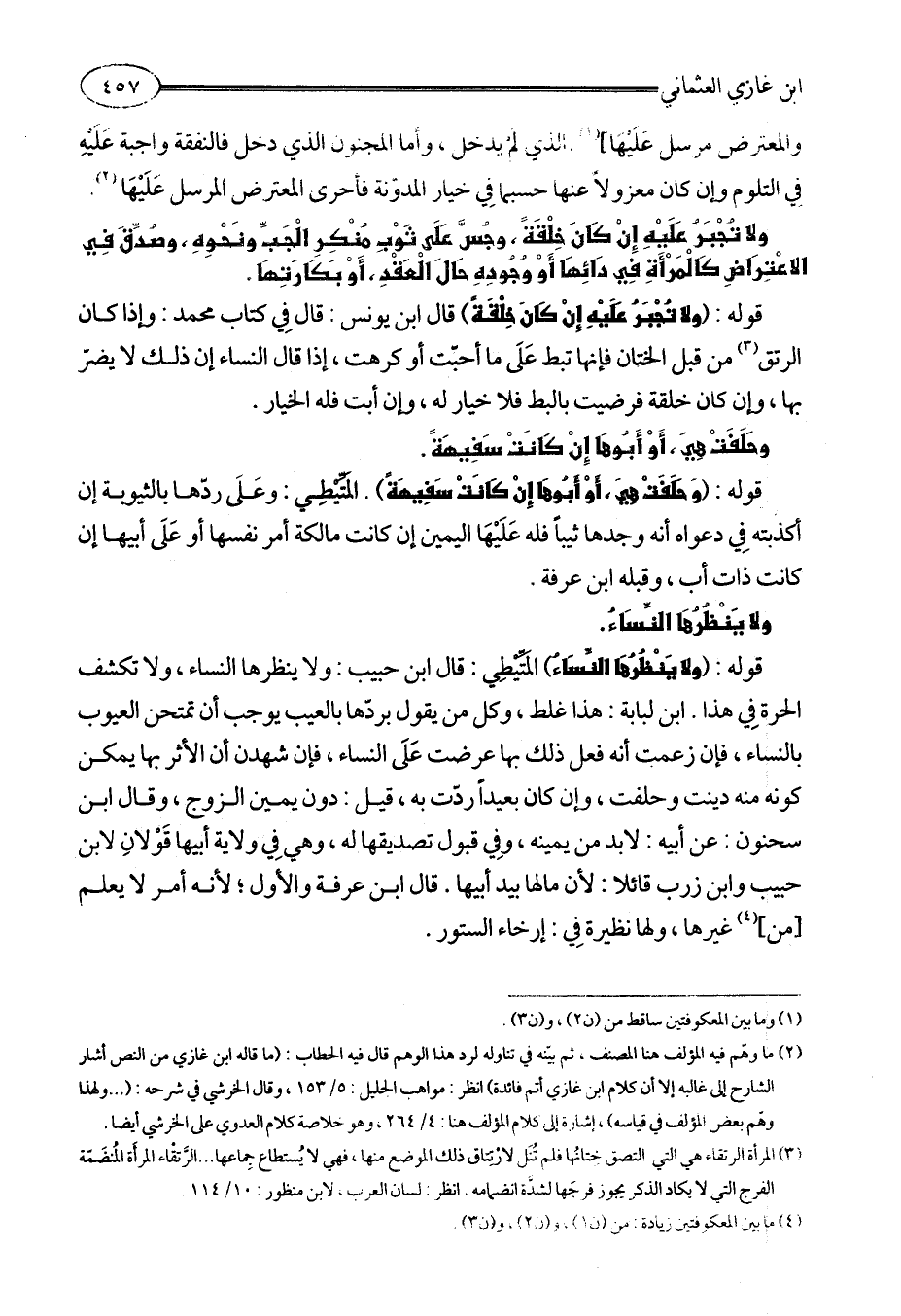 (¬2) ما وهّم فيه المؤلف هنا المصنف، ثم بيّنه في تناوله لرد هذا الوهم قال فيه الحطاب: (ما قاله ابن غازي من النص أشار الشارح إلى غالبه إلا أن كلام ابن غازي أتم فائدة) انظر: مواهب الجليل: 5/ 153، وقال الخرشي في شرحه: (... ولهذا وهّم بعض المؤلف في قياسه)، إشارة إلى كلام المؤلف هنا: 4/ 264، وهو خلاصة كلام العدوي على الخرشي أيضا.
