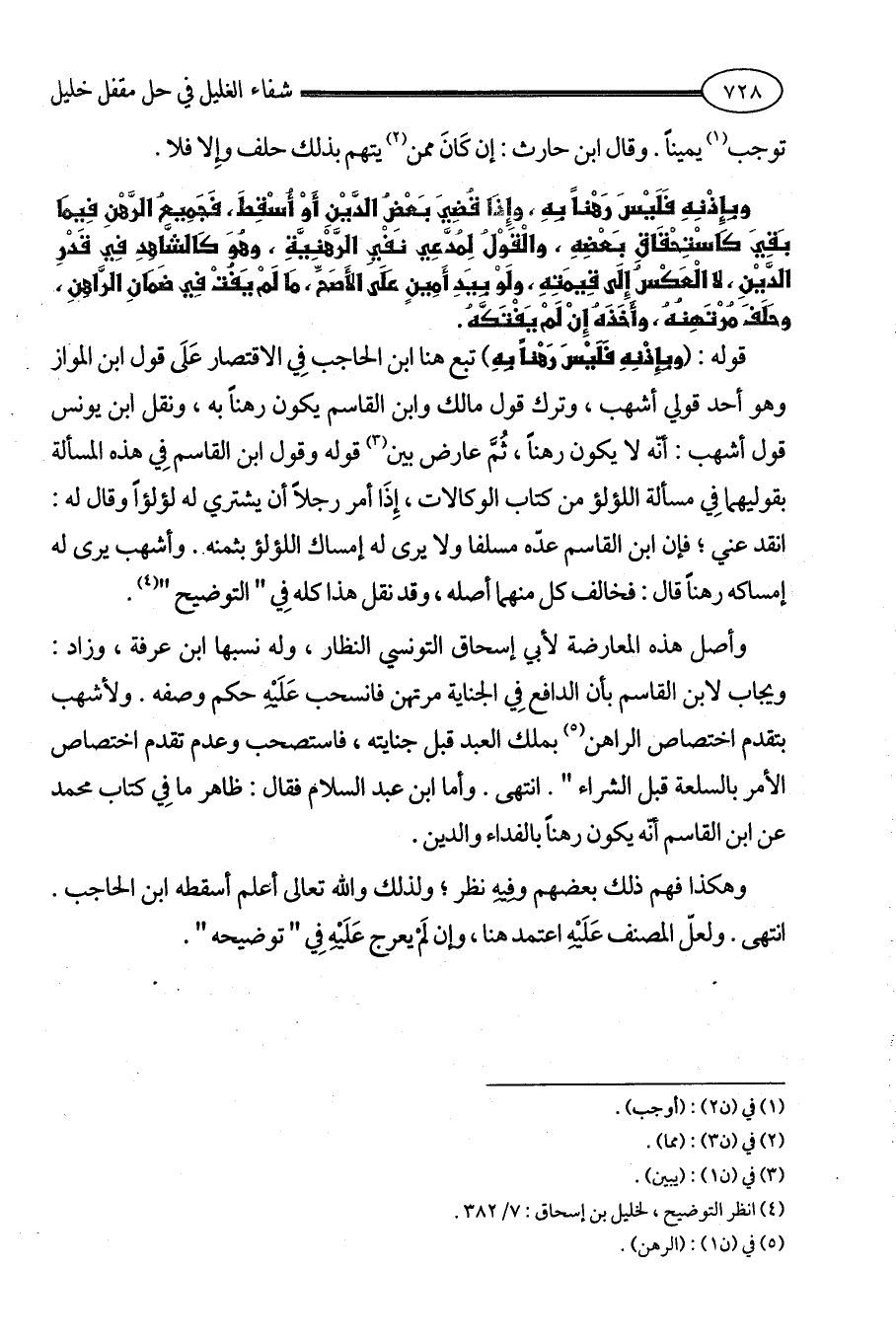 (¬4) انظر التوضيح، لخليل بن إسحاق: 7/ 382.