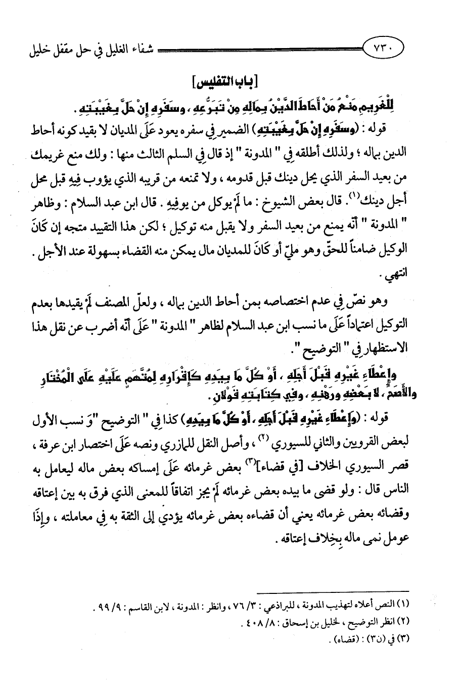 (¬2) انظر التوضيح، لخليل بن إسحاق: 8/ 408.