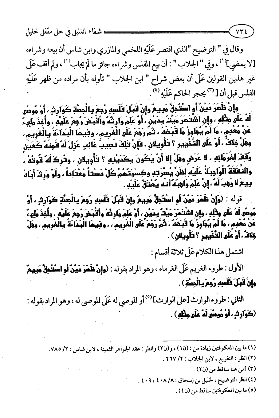 (¬4) انظر التوضيح، لخليل بن إسحاق: 8/ 408، 409.
