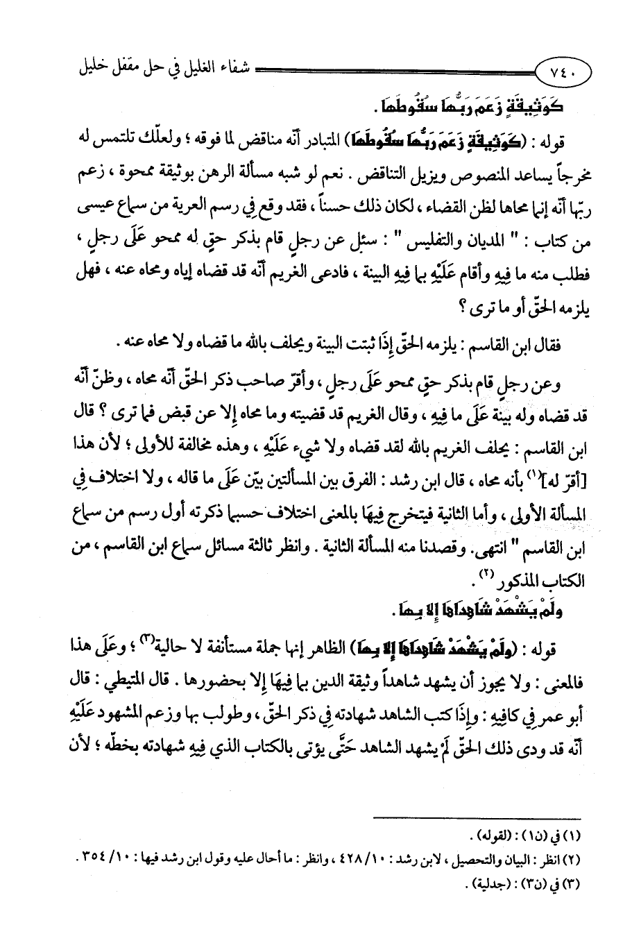 (¬2) انظر: البيان والتحصيل، لابن رشد: 10/ 428، وانظر: ما أحال عليه وقول ابن رشد فيها: 10/ 354.