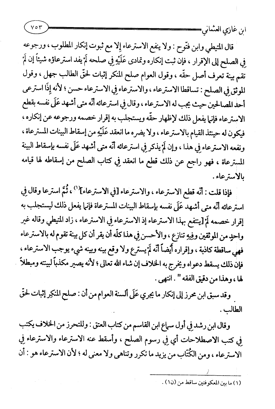 وقال ابن رشد فِي أول سماع ابن القاسم من كتاب العتق: وللتحرز من الخلاف يكتب فِي كتب الاصطلاحات أي فِي رسوم الصلح، وأسقط عنه الاسترعاء والاسترعاء فِي الاسترعاء، ومن الكُتّاب من يزيد ما تكرر وتناهى ولا معنى له؛ لأن الاسترعاء هو: أن