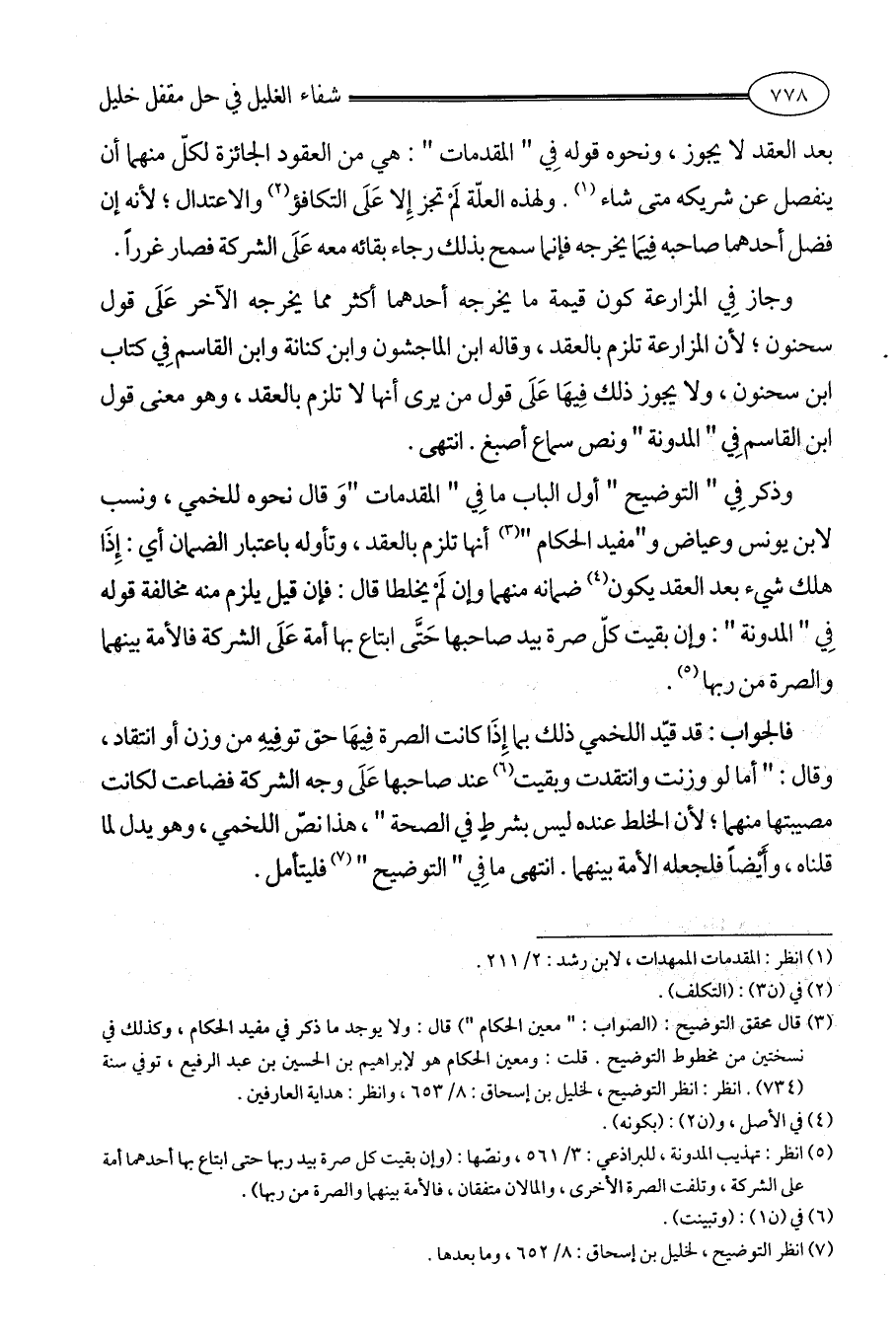 (¬7) انظر التوضيح، لخليل بن إسحاق: 8/ 652، وما بعدها.