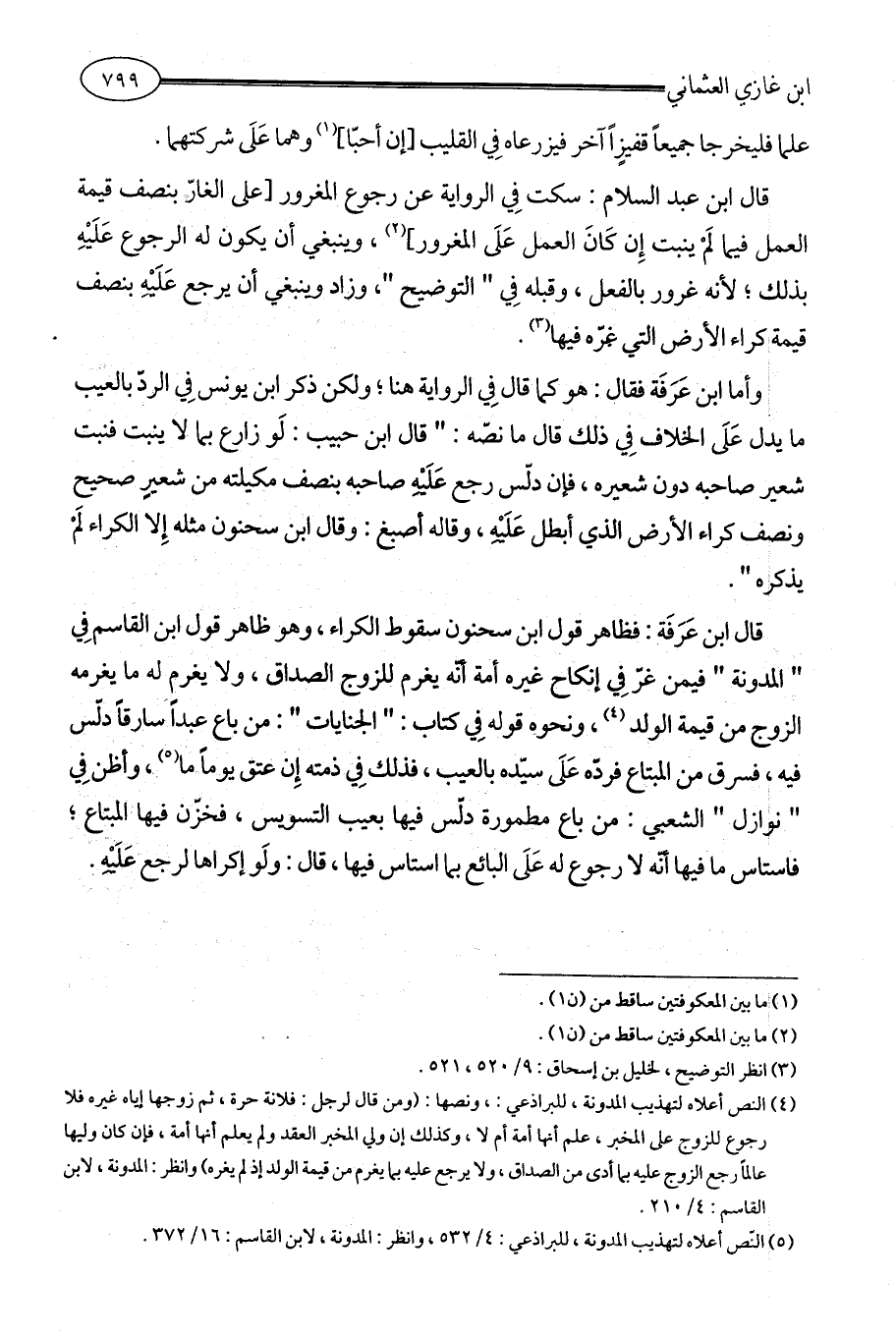 (¬5) النّص أعلاه لتهذيب المدونة، للبراذعي: 4/ 532، وانظر: المدونة، لابن القاسم: 16/ 372.