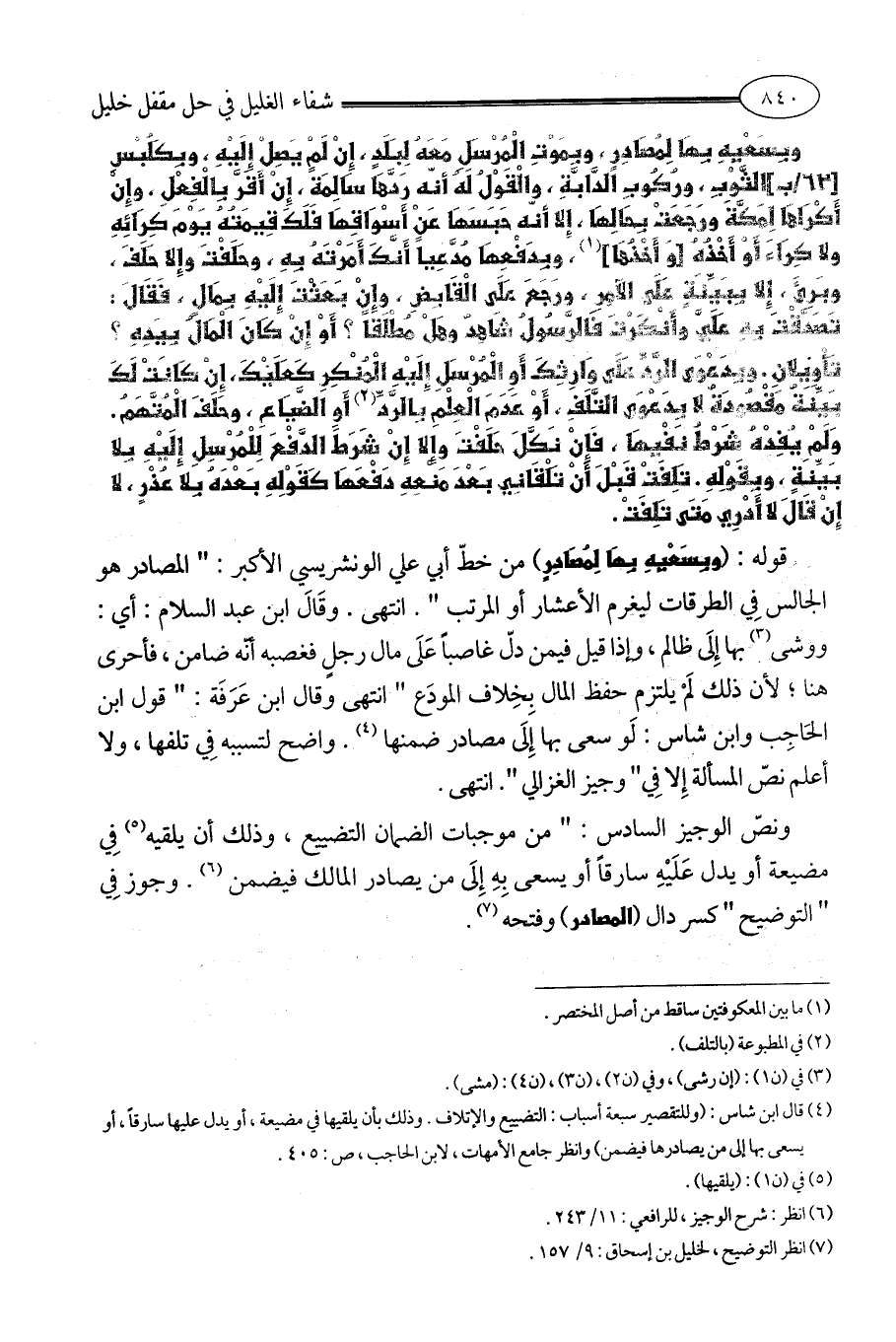(¬7) انظر التوضيح، لخليل بن إسحاق: 9/ 157.