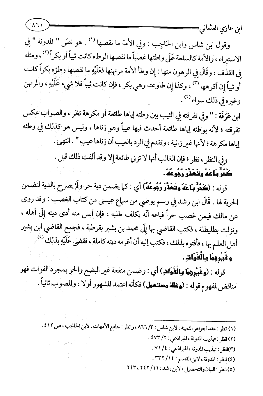 (¬1) انظر: عقد الجواهر الثمينة، لابن شاس: 3/ 866، وانظر: جامع الأمهات، لابن الحاجب، ص 412.
