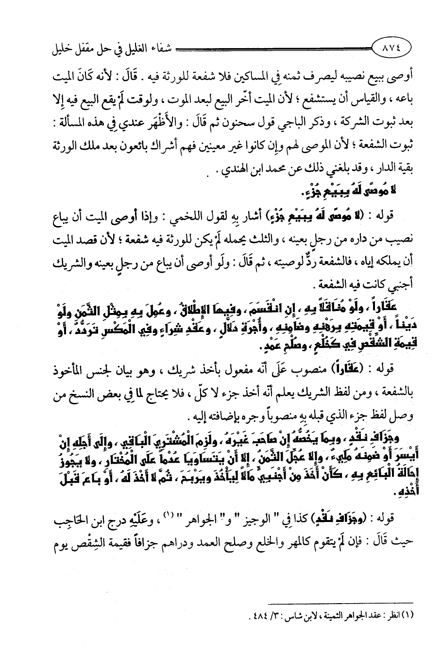 (¬1) انظر: عقد الجواهر الثمينة، لابن شاس: 3/ 484.