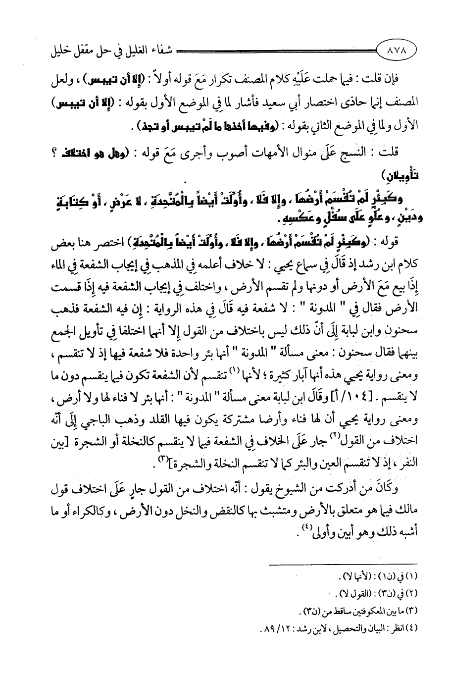 (¬4) انظر: البيان والتحصيل، لابن رشد: 12/ 89.