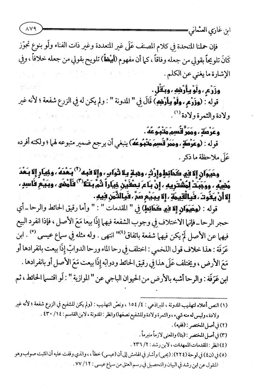(¬1) النص أعلاه لتهذيب المدونة، للبراذعي: 4/ 154، ونصّ التهذيب: (ولم يكن للشفيع في الزرع شفعة؛ لأنه غير ولادة، وليس له منه شيء، والثمرة ولادة وللشفيع نصفها) وانظر: المدونة، لابن القاسم: 14/ 430.