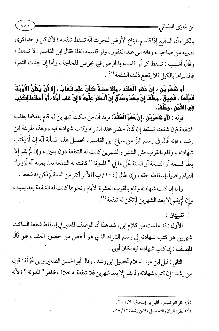 (¬2) انظر: البيان والتحصيل، لابن رشد: 12/ 58.