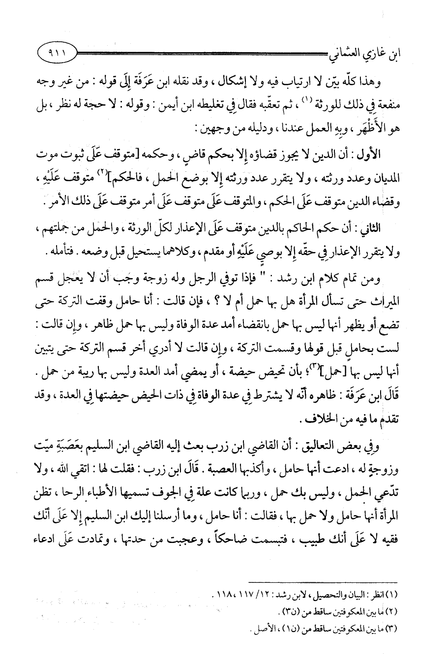 (¬1) انظر: البيان والتحصيل، لابن رشد: 12/ 117، 118.