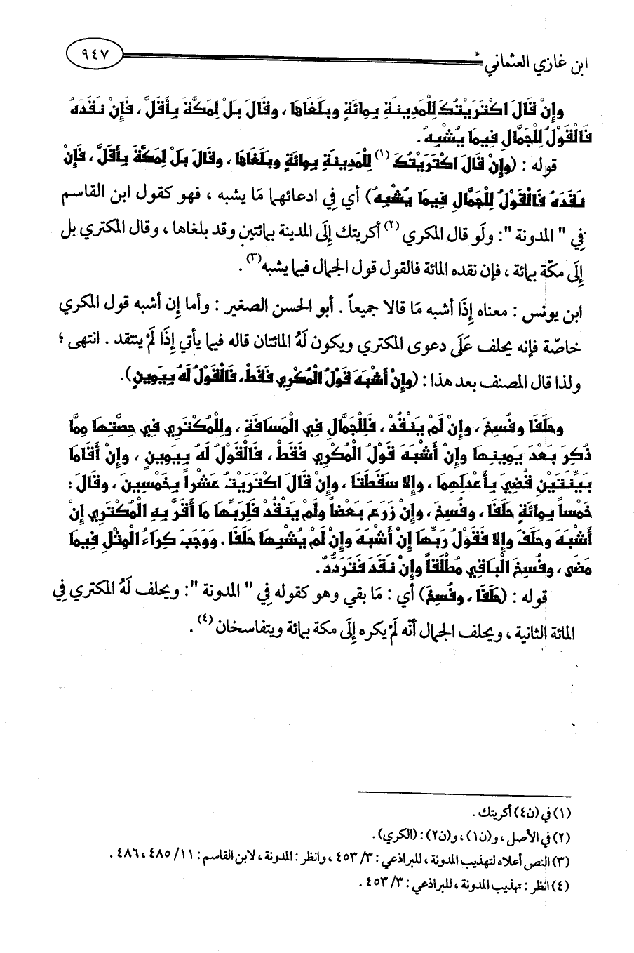 (¬3) النص أعلاه لتهذيب المدونة، للبراذعي: 3/ 453، وانظر: المدونة، لابن القاسم: 11/ 485، 486.