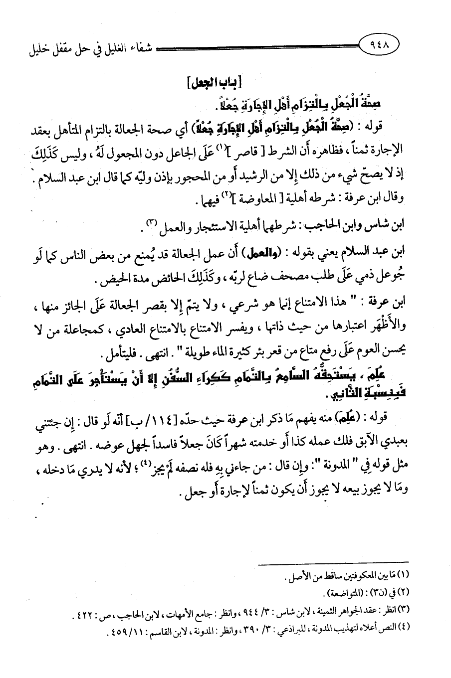 (¬3) انظر: عقد الجواهر الثمينة، لابن شاس: 3/ 944، وانظر: جامع الأمهات، لابن الحاجب، ص: 422.