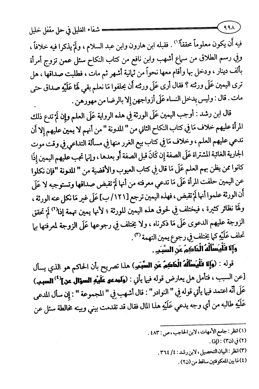 (¬3) انظر: البيان التحصيل، لابن رشد: 4/ 364.