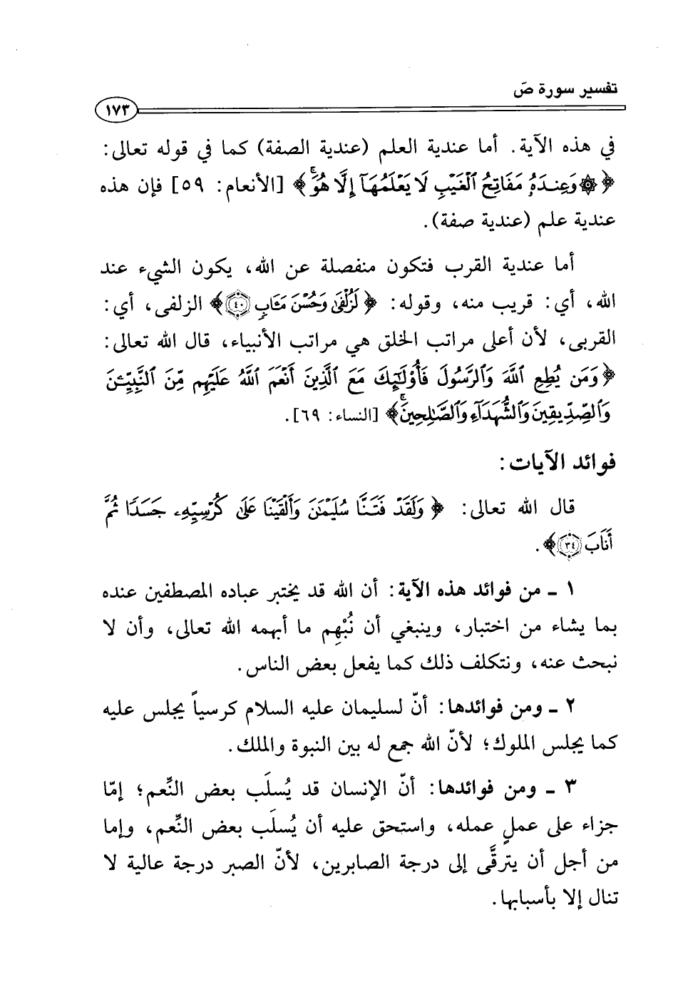 في هذه الآية. أما عندية العلم (عندية الصفة) كما في قوله تعالى: {وَعِنْدَهُ مَفَاتِحُ الْغَيْبِ لَا يَعْلَمُهَا إِلَّا هُوَ} [الأنعام: ٥٩] فإن هذه عندية علم (عندية صفة).