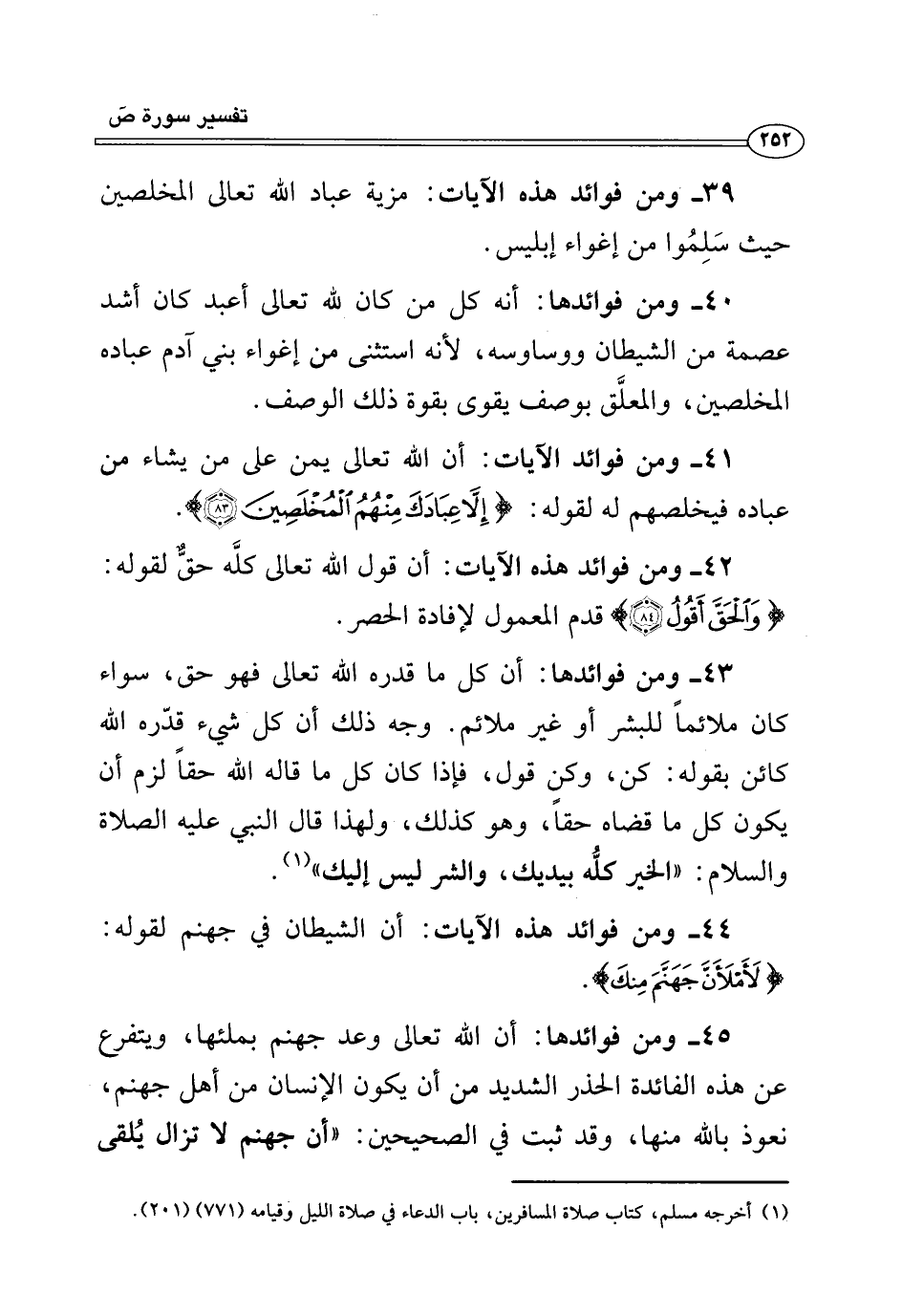 ٣٩ - ومن فوائد هذه الآيات: مزية عباد الله تعالى المخلصين حيث سَلِمُوا من إغواء إبليس.