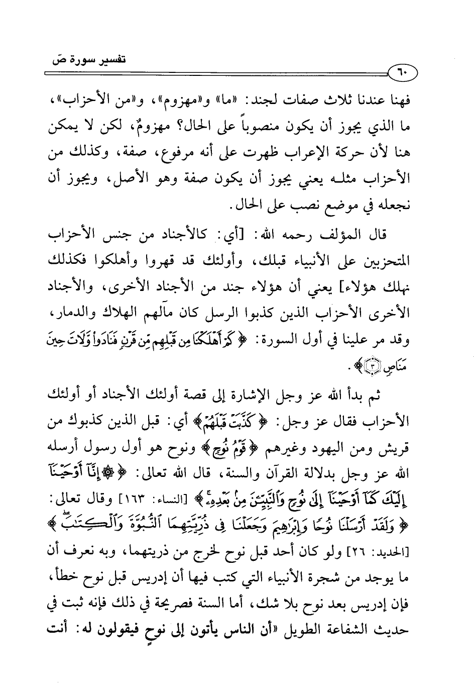 ثم بدأ الله عَزَّ وَجَلَّ الإشارة إلى قصة أولئك الأجناد أو أولئك الأحزاب فقال عَزَّ وَجَلَّ: {كَذَّبَتْ قَبْلَهُمْ} أي: قبل الذين كذبوك من قريش ومن اليهود وغيرهم {قَوْمُ نُوحٍ} ونوح هو أول رسول أرسله الله عَزَّ وَجَلَّ بدلالة القرآن والسنة، قال الله تعالى: {إِنَّا أَوْحَيْنَا إِلَيْكَ كَمَا أَوْحَيْنَا إِلَى نُوحٍ وَالنَّبِيِّينَ مِنْ بَعْدِهِ} [النساء: ١٦٣] وقال تعالى: {وَلَقَدْ أَرْسَلْنَا نُوحًا وَإِبْرَاهِيمَ وَجَعَلْنَا فِي ذُرِّيَّتِهِمَا النُّبُوَّةَ وَالْكِتَابَ} [الحديد: ٢٦] ولو كان أحد قبل نوح لخرج من ذريتهما، وبه نعرف أن ما يوجد من شجرة الأنبياء التي كتب فيها أن إدريس قبل نوح خطأ، فإن إدريس بعد نوح بلا شك، أما السنة فصريحة في ذلك فإنه ثبت في حديث الشفاعة الطويل "أن الناس يأتون إلى نوحٍ فيقولون له: أنت