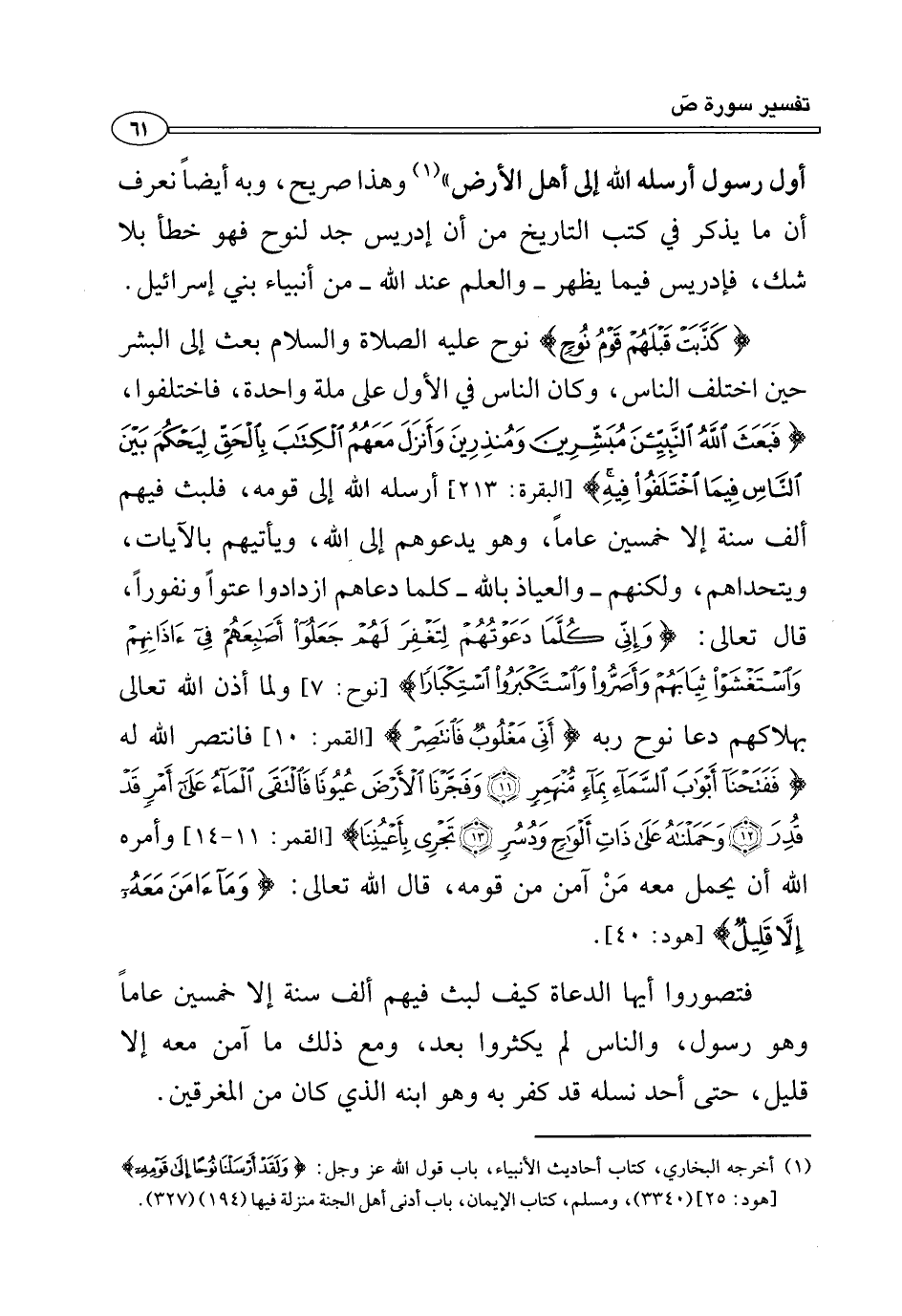 (¬١) أخرجه البخاري، كتاب أحاديث الأنبياء، باب قول الله عَزَّ وَجَلَّ: {وَلَقَدْ أَرْسَلْنَا نُوحًا إِلَى قَوْمِهِ} [هود: ٢٥] (٣٣٤٠)، ومسلم، كتاب الإيمان, باب أدنى أهل الجنة منزلة فيها (١٩٤) (٣٢٧).