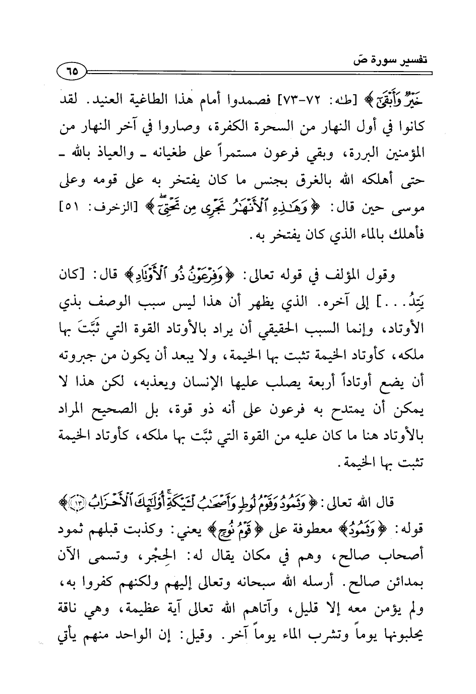 وقول المؤلف في قوله تعالى: {وَفِرْعَوْنُ ذُو الْأَوْتَادِ} قال: [كان يَتِدُ ... ] إلى آخره. الذي يظهر أن هذا ليس سبب الوصف بذي الأوتاد، وإنما السبب الحقيقي أن يراد بالأوتاد القوة التي ثَبَّتَ بها ملكه، كأوتاد الخيمة تثبت بها الخيمة، ولا يبعد أن يكون من جبروته أن يضع أوتادًا أربعة يصلب عليها الإنسان ويعذبه، لكن هذا لا يمكن أن يمتدح به فرعون على أنه ذو قوة، بل الصحيح المراد بالأوتاد هنا ما كان عليه من القوة التي ثبَّت بها ملكه، كأوتاد الخيمة تثبت بها الخيمة.