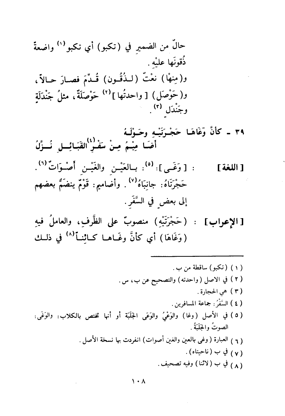 39 - (كَأَن وغاها حجرتيه وَحَوله ... أضا مِيم من سفر الْقَبَائِل نزل)