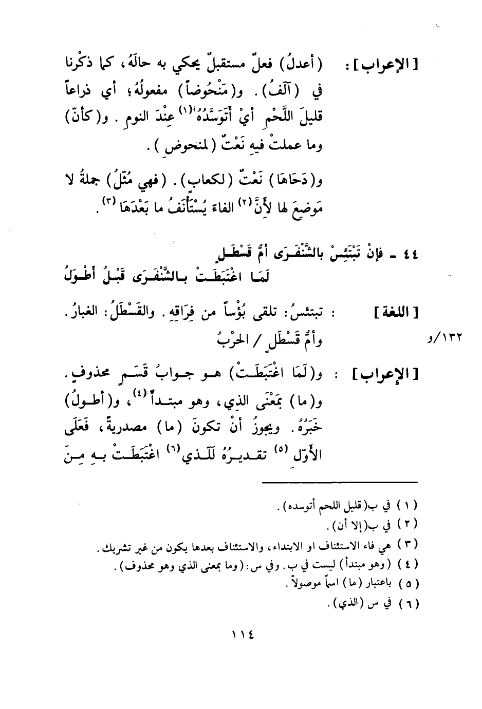 [الْإِعْرَاب] : (أعدل) فعل مُسْتَقْبل يَحْكِي بِهِ حَاله، كَمَا ذكرنَا فِي (آلف) .