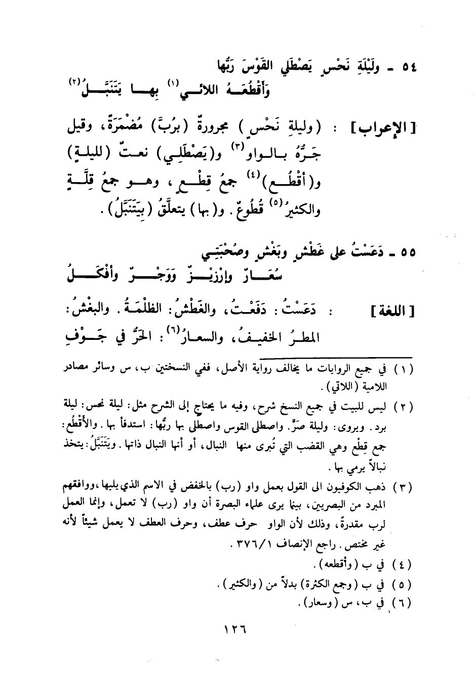 54 - (وَلَيْلَة نحس يصطلي الْقوس رَبهَا ... وأقطعه اللائي بهَا يتنبل)