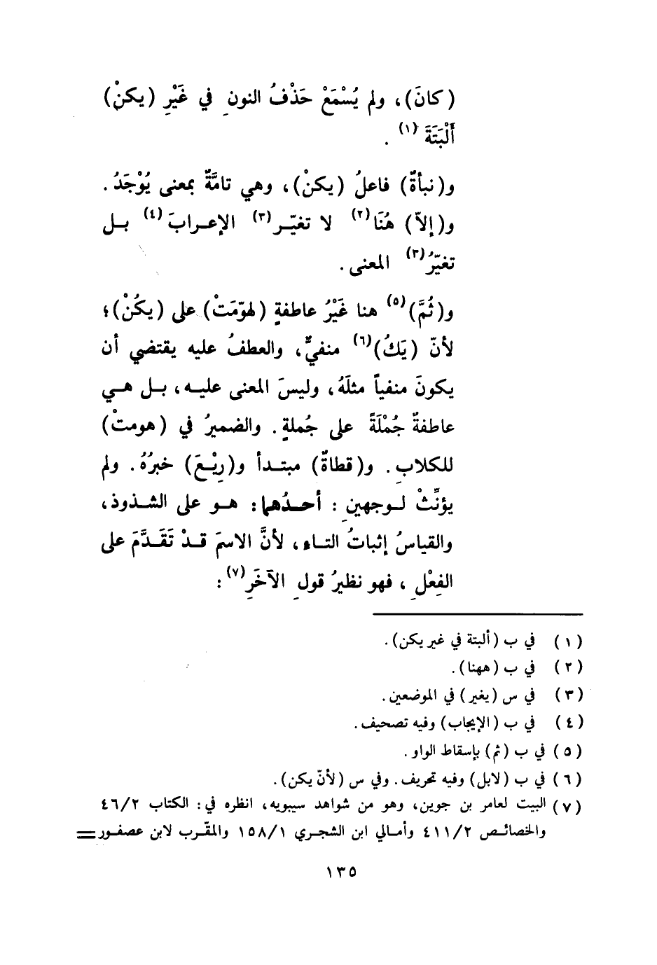(كَانَ) ، وَلم يسمع حذف النُّون فِي غير (يكن) أَلْبَتَّة.