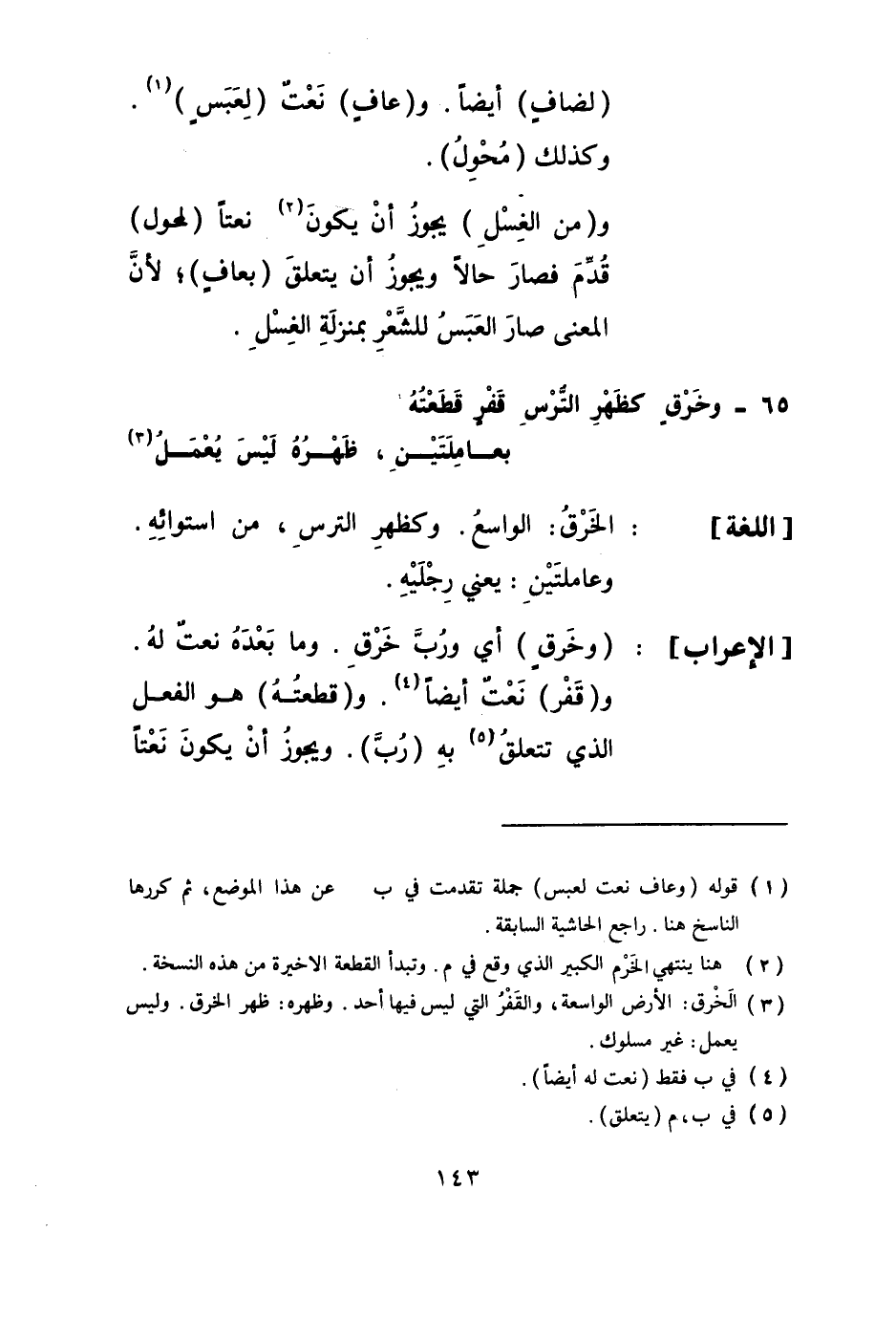 65 - (وخرق كَظهر الترس قفر قطعته ... بعاملتين، ظَهره لَيْسَ يعْمل)