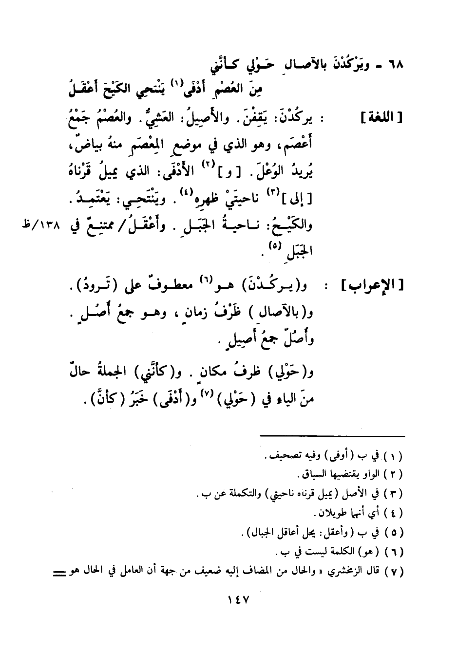 68 - (ويركدن بالآصال حَولي كأنني ... من العصم أدفى ينتحي الكيح أَعقل)
