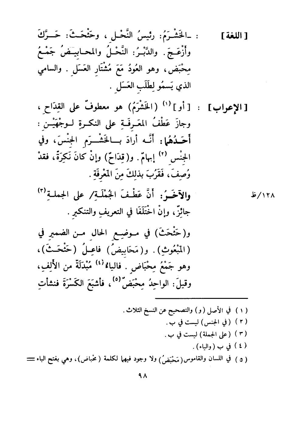 [اللُّغَة] : - الخشرم: رَئِيس النَّحْل، وحثحث: حرك وأزعج.