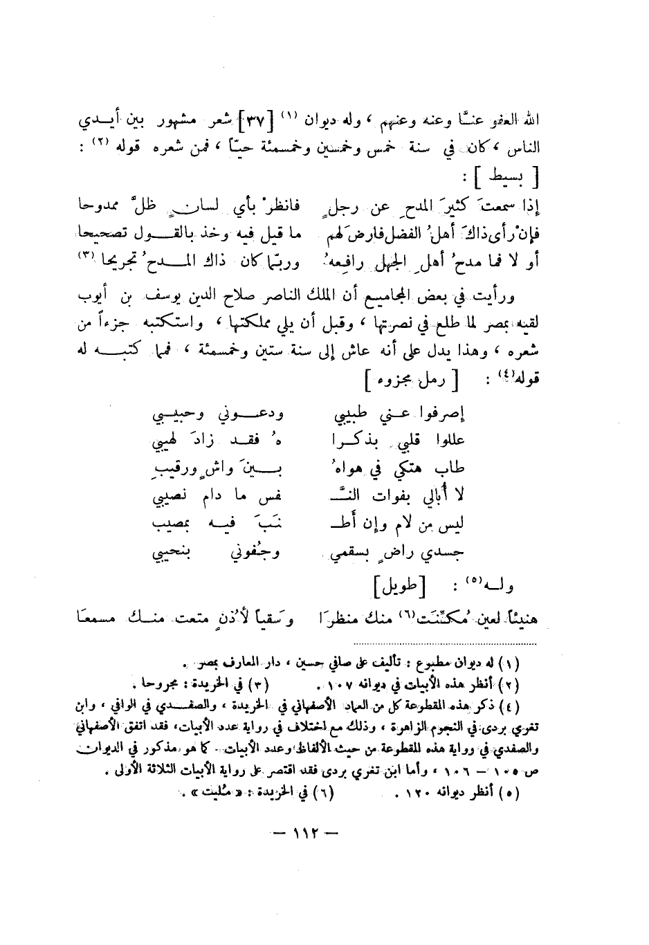 الله العفو عنّا وعنه وعنهم، وله ديوان شعر مشهور بين أيدي الناس، كان في سنة خمس وخمسين وخمسمئة حيّاً، فمن شعره قوله: بسيط: