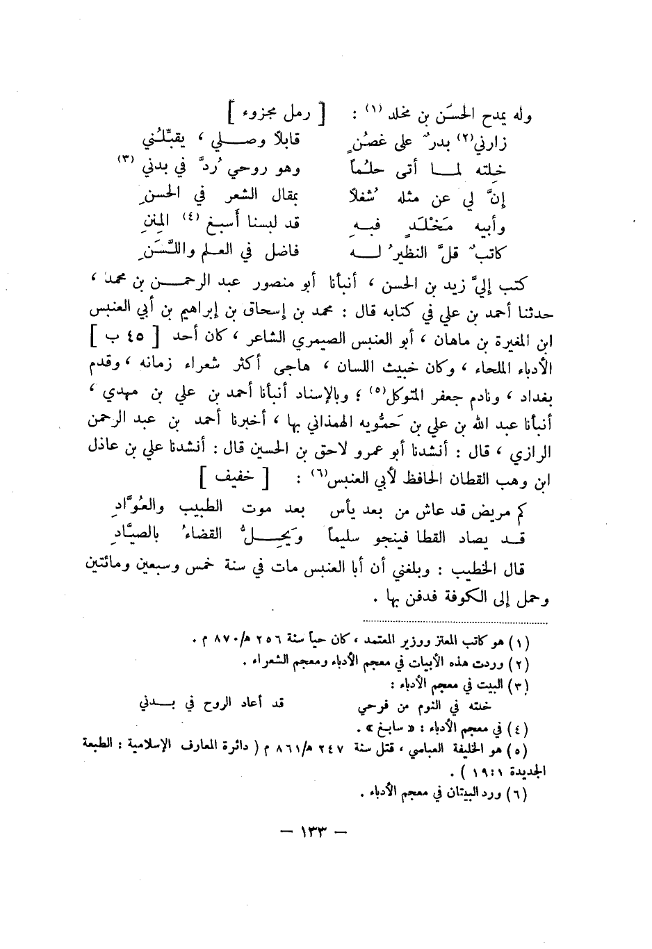 وله يمدح الحسن بن مخلد: رمل مجزوء