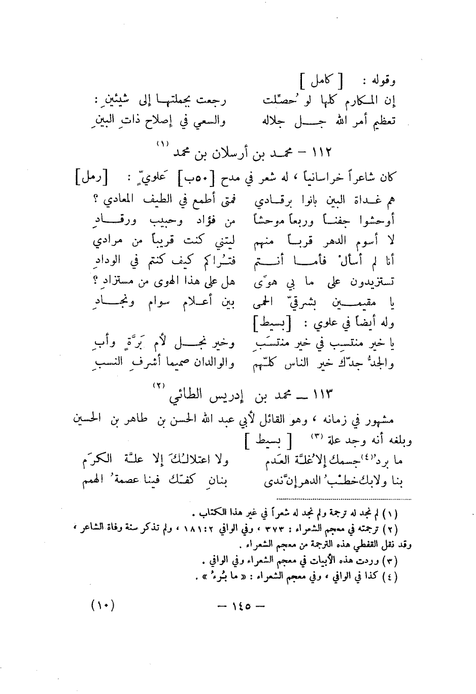 مشهور في زمانه، وهو القائل لأبي عبد الله الحسن بن طاهر بن الحسين وبلغه أنه وجد علة: بسيط: