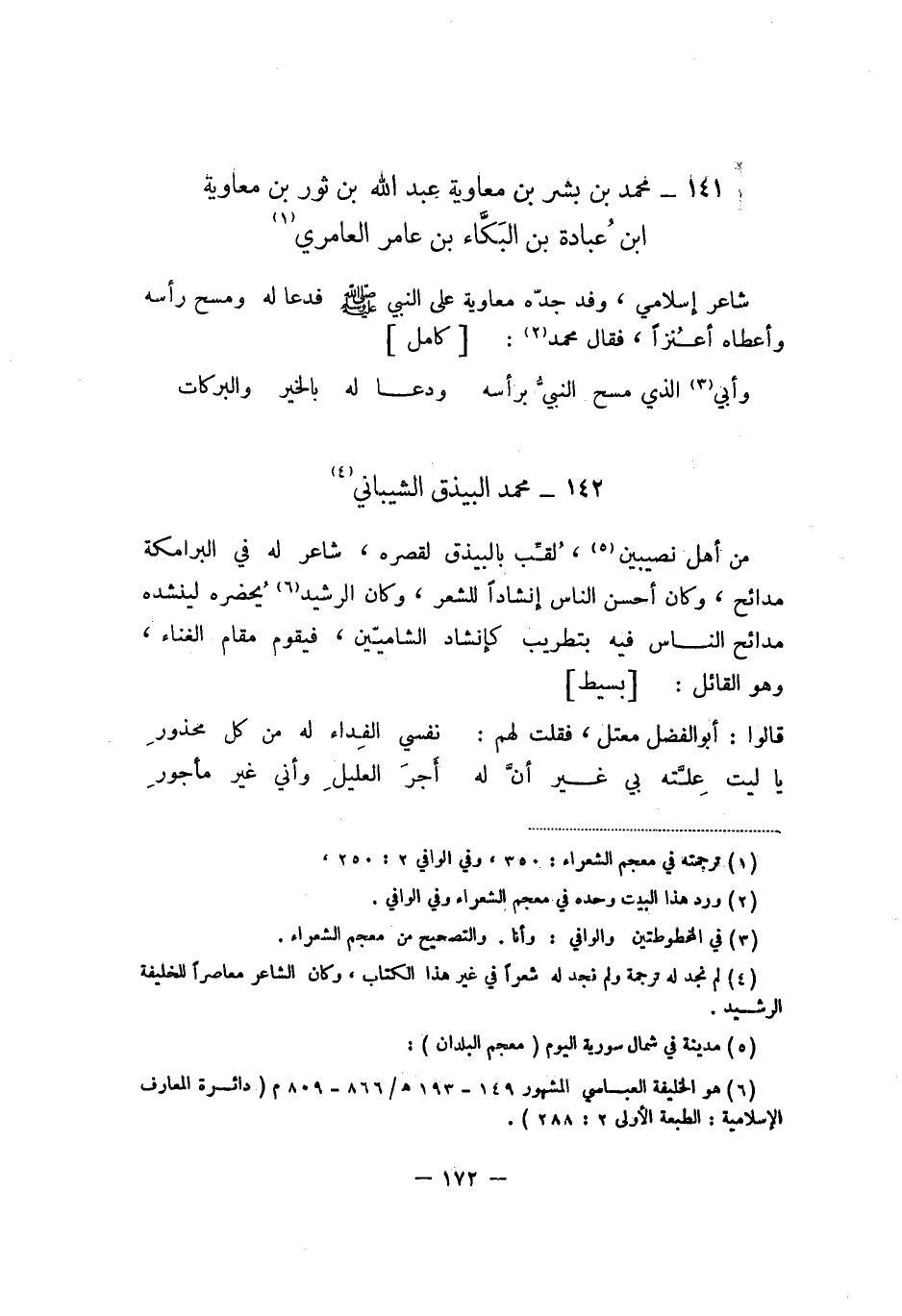 141 - محمد بن بشر بن معاوية عبد الله بن ثور بن معاوية