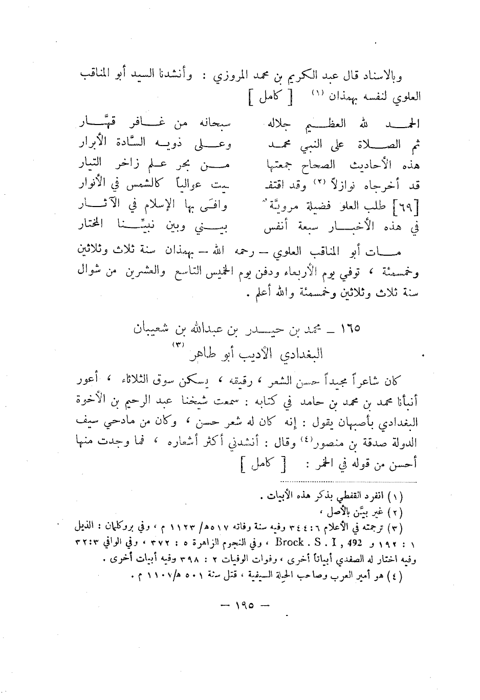 وبالإسناد قال عبد الكريم بن محمد المروزي: وأنشدنا السيد أبو المناقب العلوي لنفسه بهمذان: كامل: