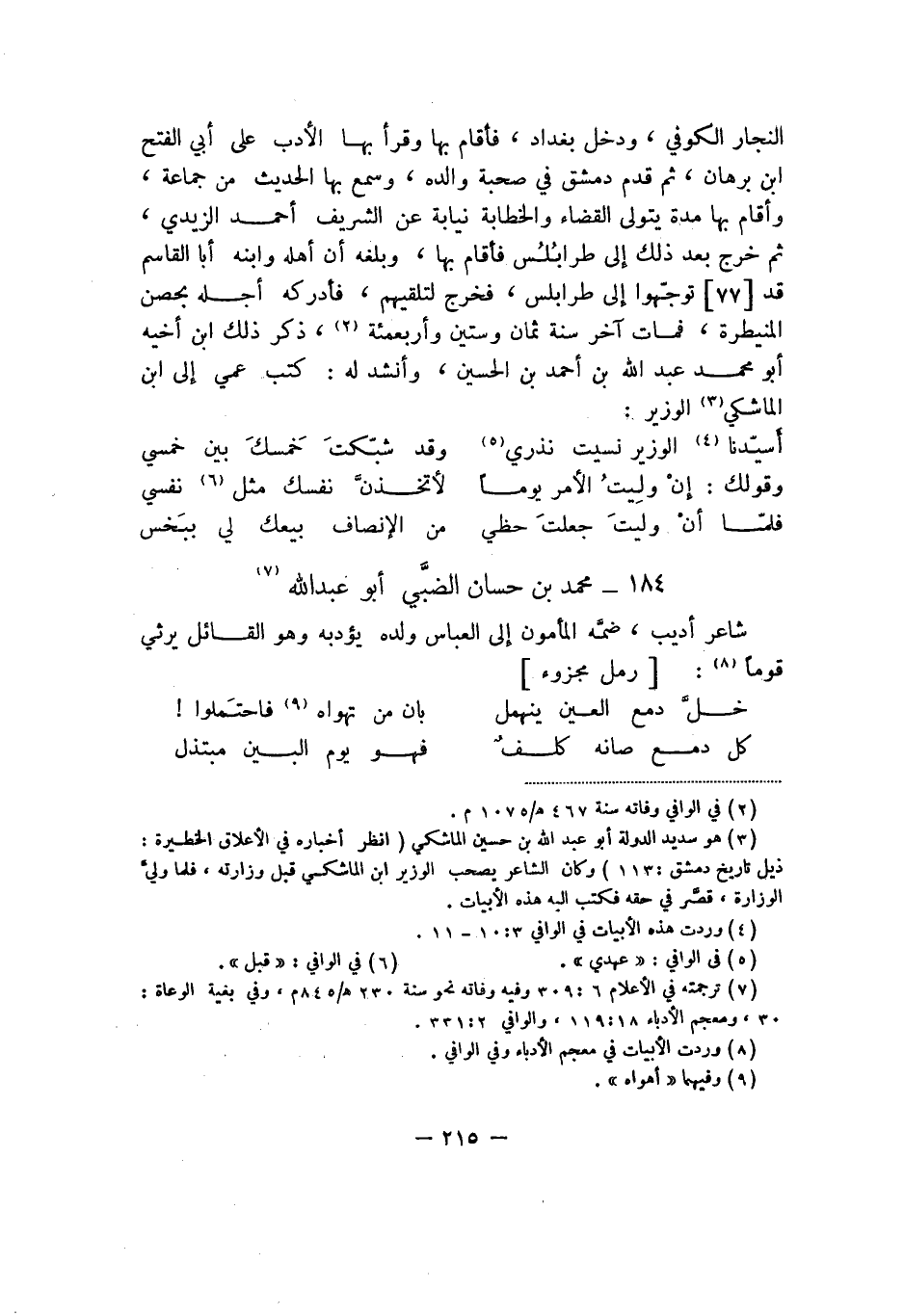 شاعر أديب، ضمَّه المأمون إلى العباس ولده يؤدبه وهو القائل يرثي قوماً: رمل مجزوء: