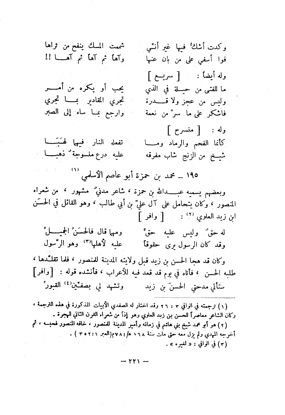 وبعضهم يسميه عبد الله بن حمزة، شاعر مدني مشهور، من شعراء المنصور، وكان يتحامل على آل علي بن أبي طالب، وهو القائل في الحسن ابن زيد العلوي: وافر: