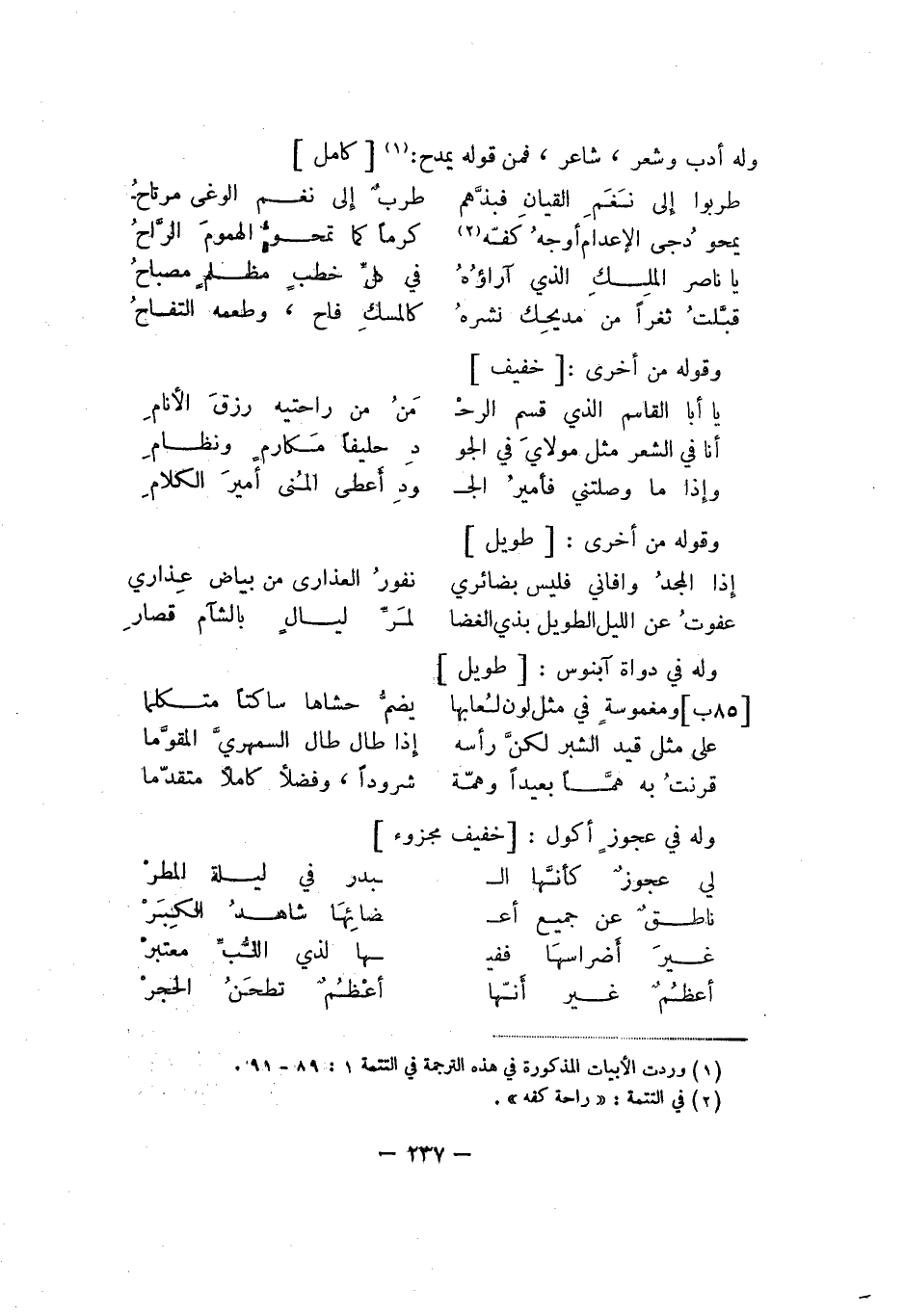 وله أدب وشعر، شاعر، فمن قوله يمدح: كامل: