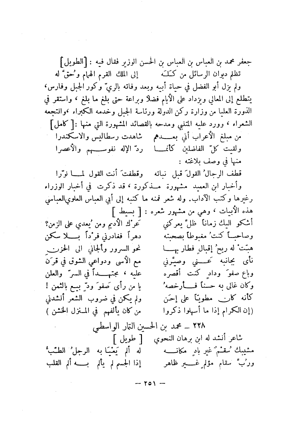 جعفر محمد بن العباس بن العباس بن الحسن الوزير فقال فيه: الطويل: