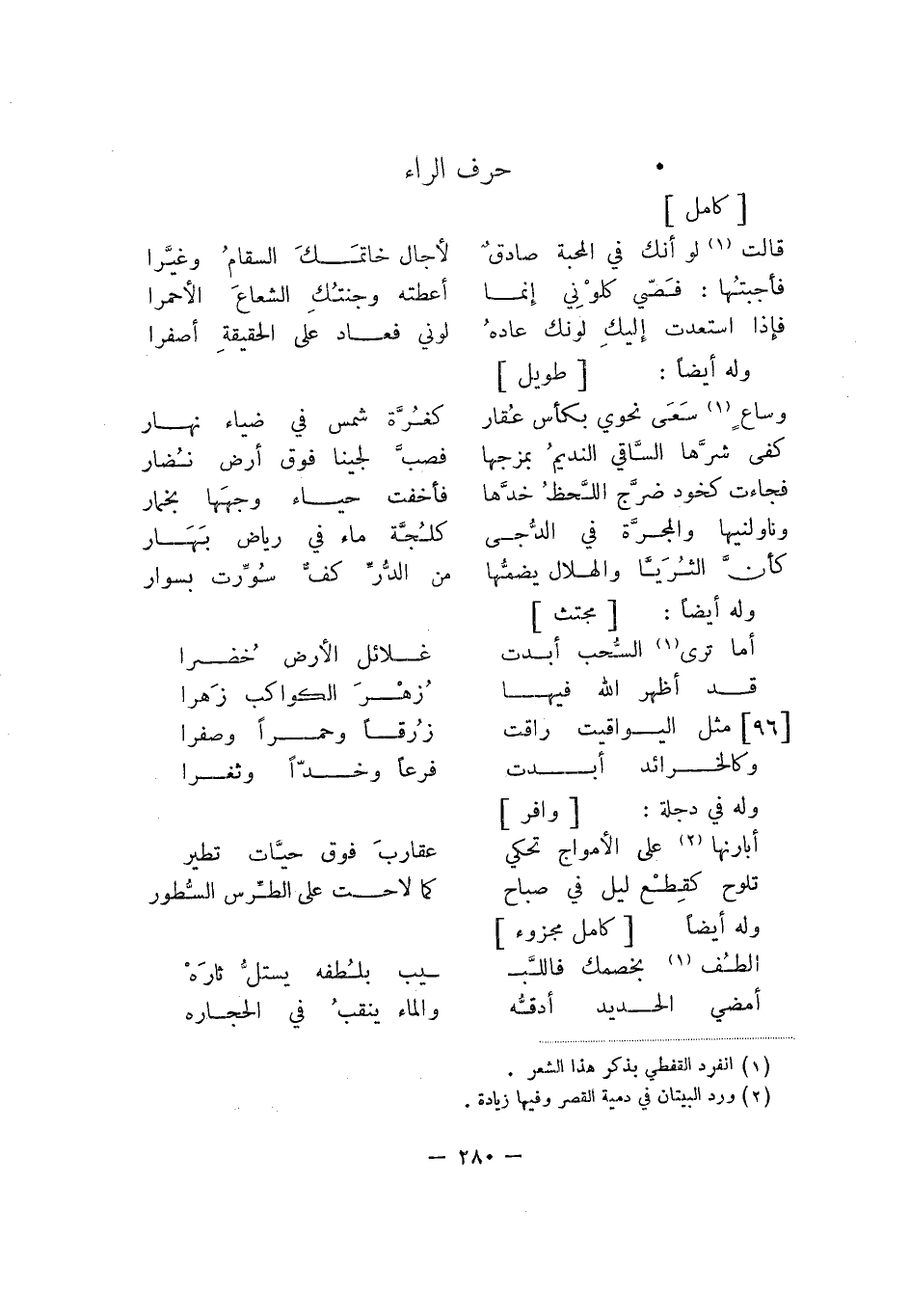 كفى شرَّها السَّاقي النديمُ بمزجها ... فصبَّ لجينا فوق أرض نُضار