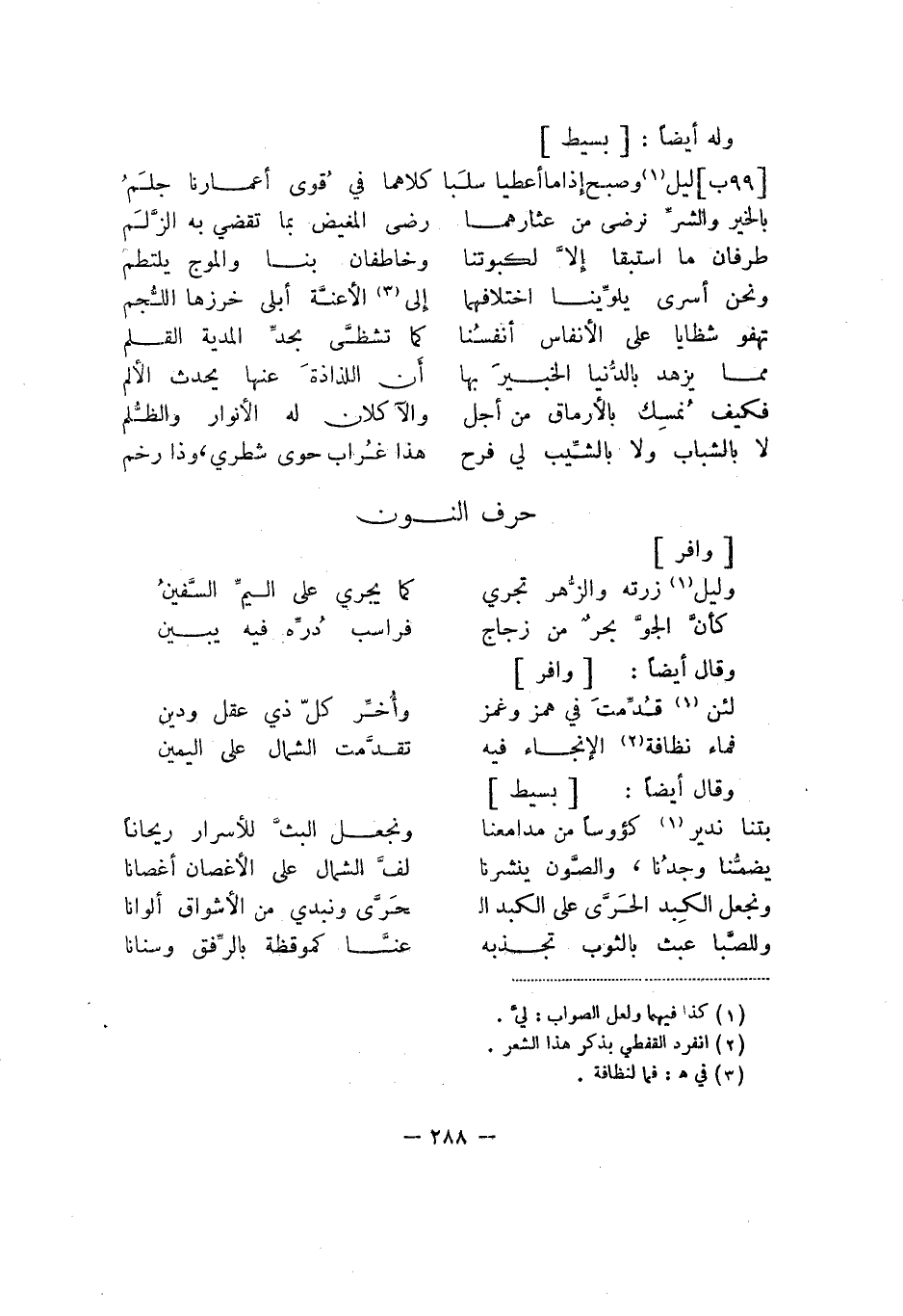 يضمُّنا وجدُنا، والصَّون ينشرنالفَّ الشمال على الأغصان أغصانا ونجعل الكِبد الحَرَّى على الكبد الحَرَّى ونبدي من الأشواق ألوانا