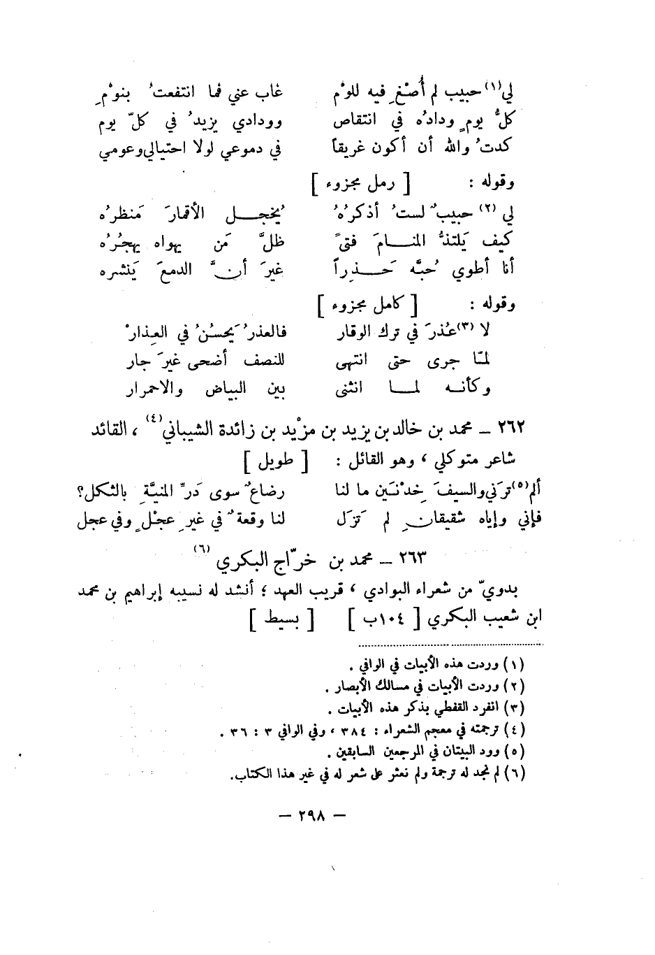 262 - محمد بن خالد بن يزيد بن مزْيد بن زائدة الشيباني، القائد شاعر متوكلي، وهو القائل طويل