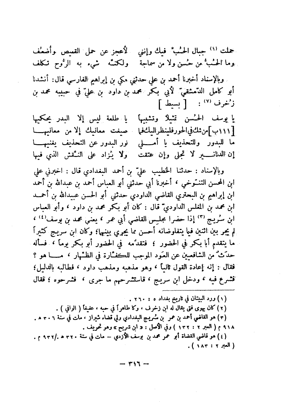 أبو كامل الدمشقي لأبي بكر محمد بن داود بن علي في حبيبه محمد بن زُخْرف: بسيط: