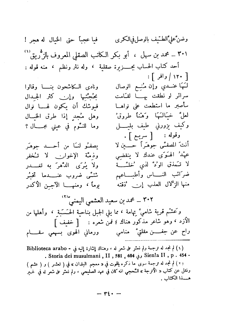 وضنَّ عليَّ الطّيف بالوصل في الكرى ... فيا عجباً حتى الخيال له هجر! 301 محمد بن سهل، أبو بكر الكاتب الصقلي المعروف بالزُّريق