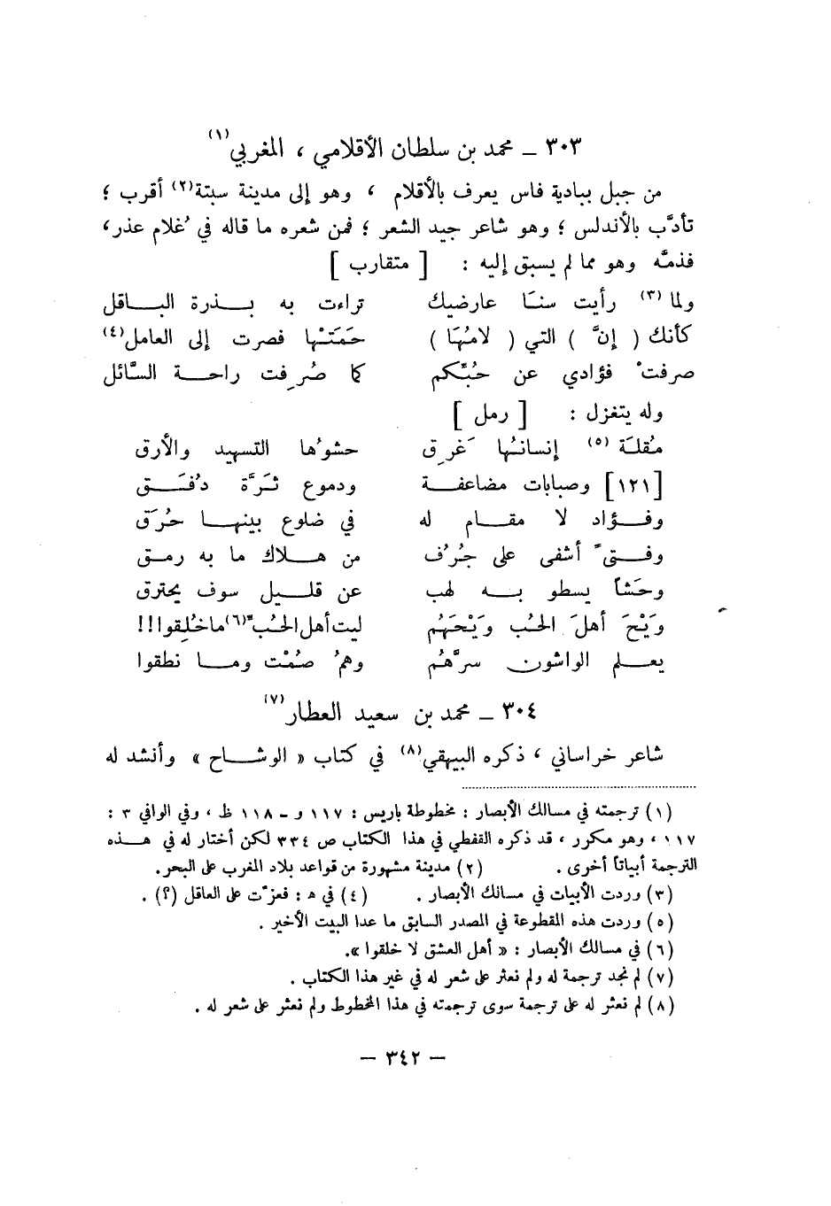 من جبل ببادية فاس يعرف بالأقلام، وهو إلى مدينة سبتة أقرب؛ تأدّب بالأندلس، وهو شاعر جيد الشعر، فمن شعره ما قاله في غلام عذر، فذمَّه وهو مما لم يسبق إليه: متقارب: