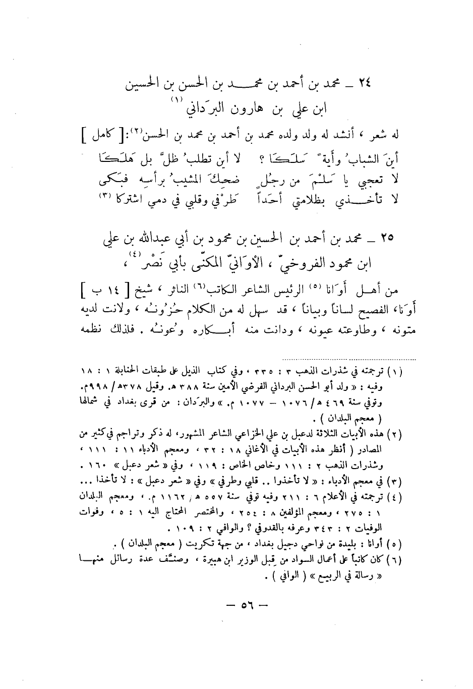 ابن علي بن هارون البرَداني له شعر، أنشد له ولد ولده محمد بن أحمد بن محمد بن الحسن: كامل